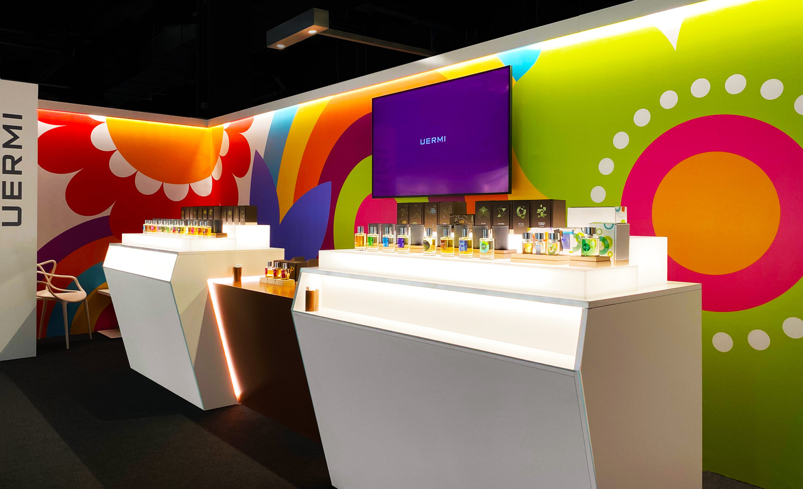 The UERMI booth was an irresistible explosion of colors. We launched a new fragrance,70s MOOD, as tribute to an entire iconic decade. The Seventies have been incredibly revolutionary, everywhere and in every sense. A time of profound changes, even controversial, a storm of creativity and conquests of new rights that have transformed the world. And UERMI has been inspired to create a new perfume that celebrates that positive mood.